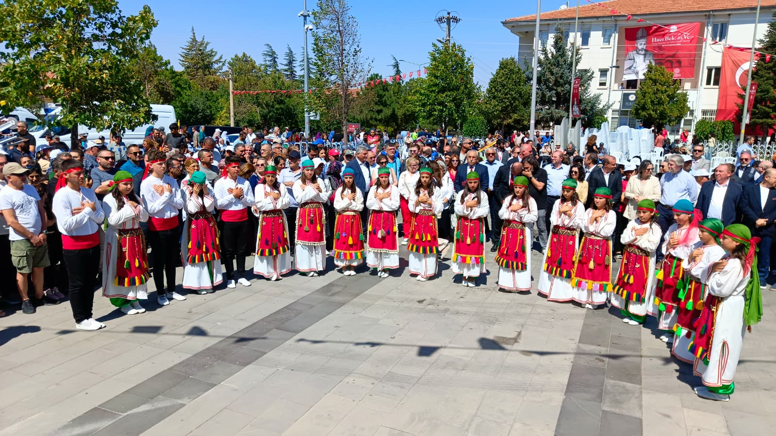 62.Ulusal, 36. Uluslararası Hacı Bektaş Veli Anma Törenleri ve Kültür Sanat Etkinlikleri Hacıbektaş Belediye Başkanı Ali Kaim’in eşliğinde İstanbul Belediye Başkan Vekili Nuri Aslan, Üsküdar Belediye Başkanı Sinem Dedetaş, İBB Grup Başkan Vekili Ülkü İnanlı ve tüm halkın katılımıyla; saygı duruşu, İstiklal Marşı ve Atatürk Anıtı’na çelenk sunma töreni ile başladı. Ayhanlar Köyü Semah ekibi semaha durdu. Ardından Hünkar Hacıbektaş-ı Veli Dergahı ziyareti edildi. Gelen misafirlerimize müze görevlisi arkeolog Taylan Sümer tarafından dergah ve müze hakkında bilgiler verildi.