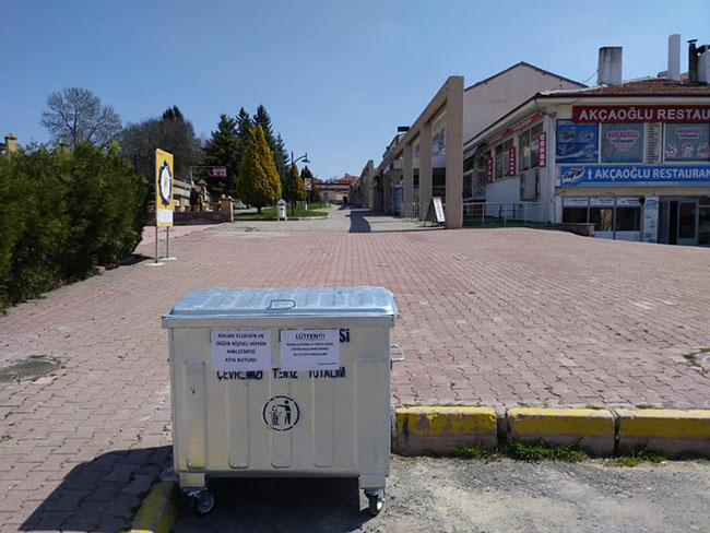 Maske, eldiven ve kişisel hijyen malzemeleri atıklarını, evinizdeki diğer atıklardan ayrı bir torbada toplayıp, 72 saat beklettikten sonra Belediye Otoparkı girişindeki ATIK KUTUSUNA bırakmanız önemle duyurulur.