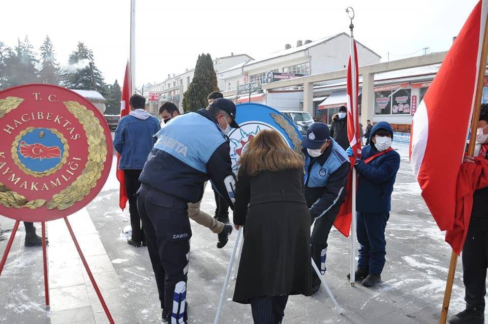 22 Aralık 1919’da Mustafa Kemal Atatürk’ün Hacıbektaş’a gelişinin 102. yılı nedeni ile Cumhuriyet Kent Meydanımızda Sayın Nevşehir Valimiz İnci Sezer BECEL, Nevşehir CHP Milletvekilimiz Sayın Faruk SARIASLAN, İlçe Kaymakamımız Sayın İbrahim Engin ŞENAY ve Beledeye Başkan Vekilimiz Sayın Dönsel GÜLER’in katılımıyla Atatürk Anıtına Çelenk Töreni, Saygı Duruşu ve İstiklal Marşımızın okunmasıyla başlamıştır.Saat 14.00’da etkinliğimiz Hacıbektaş Kültür Merkezinde devam edecektir.