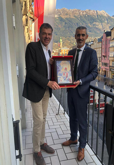 Avusturya gezimizin ilk gününde, İnnsbruck Belediye Meclis üyesi Zeliha ASLAN, Hızır Avusturya Başkanı Zöhre DOĞAN, Hazreti Ali Cemevi Başkanı Aydın YAĞIZ ve Kirvem Hakan BERKİL’le birlikte İNNSBRUCK Belediye Başkanı Sayın George WİLLİ’yi ziyaret ettik.