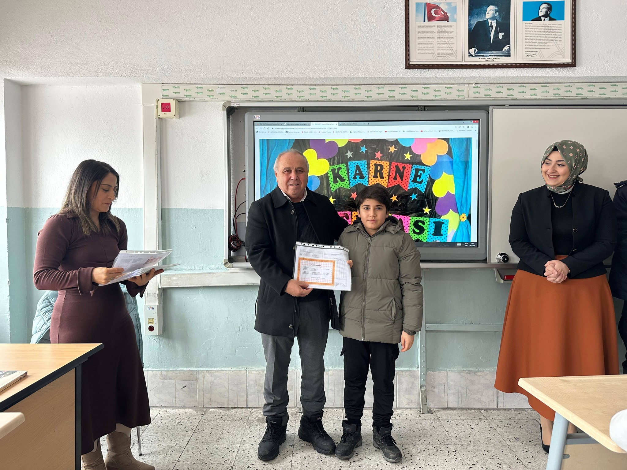 Okulların ara tatile girmesi dolayısıyla Belediye Başkan Vekilimiz Sayın Dede Göçer, öğrencilerimizle bir araya gelerek karnelerini takdim etti.