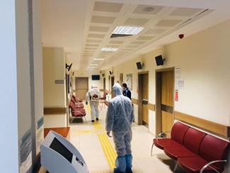 Korona Virüs salgını mücadelesi kapsamında Hacıbektaş Belediyesi ekiplerimiz tarafından, Hacıbektaş Entegre Hastanesi ve Eczanelerin dezenfekte çalışması gerçekleştirilmiştir.