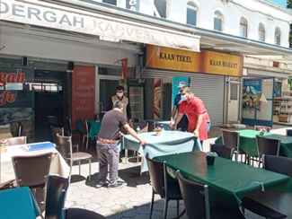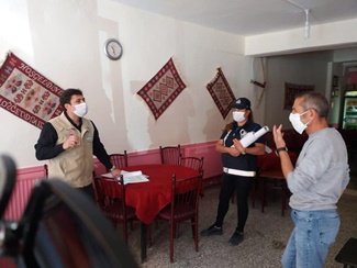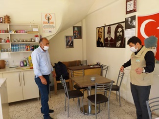 1 Haziran 2020 tarihli Covıd-19 Salgın Yönetimi ve Çalışma Rehberine göre, Hacıbektaş Belediyesi Zabıta Amirliği ve Hacıbektaş İlçe Tarım ve Orman Müdürlüğü Gıda Denetim Mühendisleri ile birlikte, Hacıbektaş İlçemiz genelinde faaliyet gösteren kıraathane, kahvahane, çayocağı, ticari taksiler, berberhaneler ve güzellik salonlarında denetlemeler yapılmış olup, hijyen kuralları, maske kullanımı, sosyal mesafe, masaların kullanımı ve oturma şekilleri kuralları, işletme sahiplerine detaylarıyla anlatıldı.