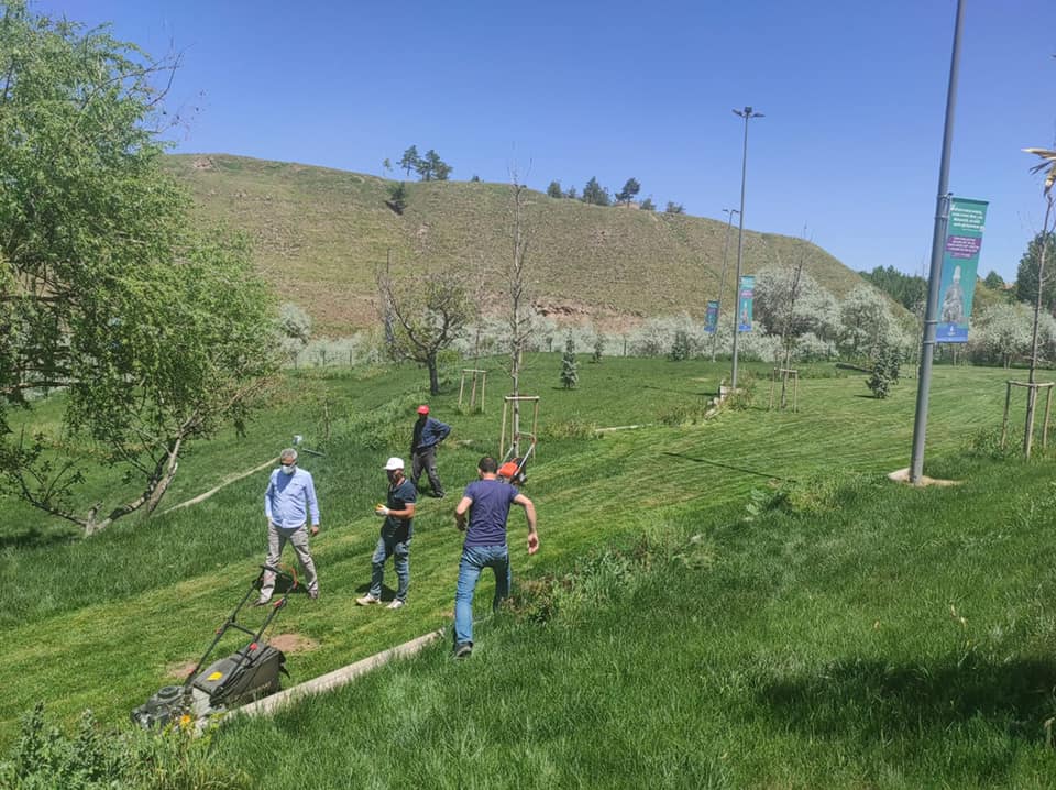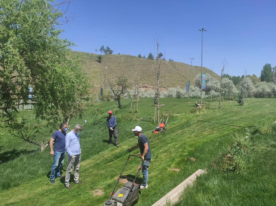 Park ve Bahçeler ekiplerimiz Bayramın 2. günü Kadıncık Ana ve Bektaş Efendi Türbelerinde çim biçme işlerine devam ediyorlar.Ayrıca 19 Mayıs’da Kadıncık Ana bölgesine dikeceğimiz Karadut ve Alıç Ağaçlarının yerlerini hazırlıyoruz.Serçeşme parkı ve Sosyal Tesislerinin teras kapatma çalışmasında sona geliyoruz.