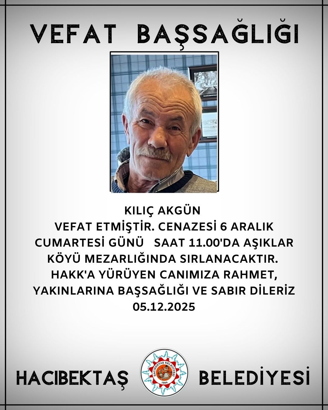 Kılıç Akgün Vefat ve Başsağlığı