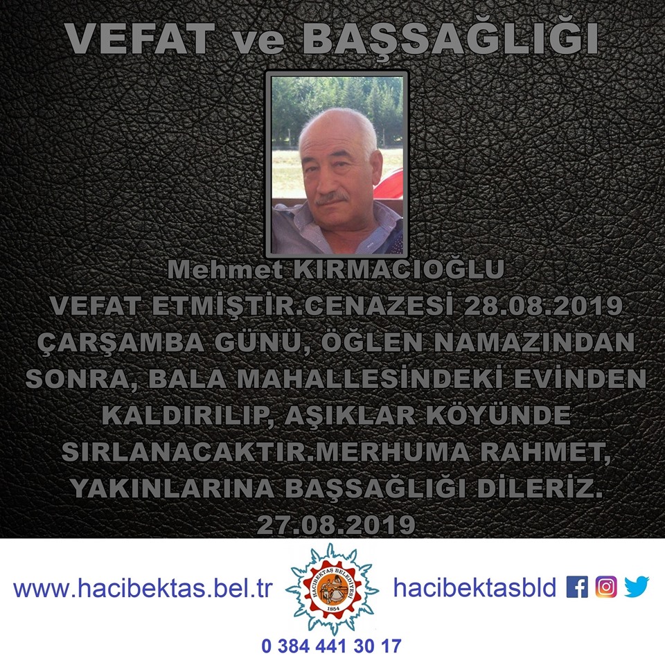 Mehmet KIRMACIOĞLU Vefat ve Başsağlığı