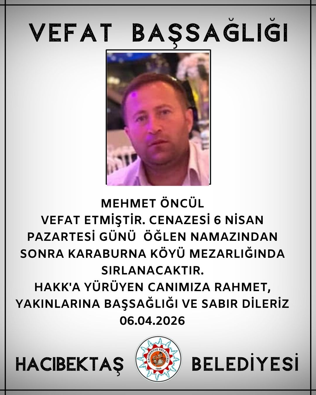 Mehmet Öncül Vefat ve Başsağlığı