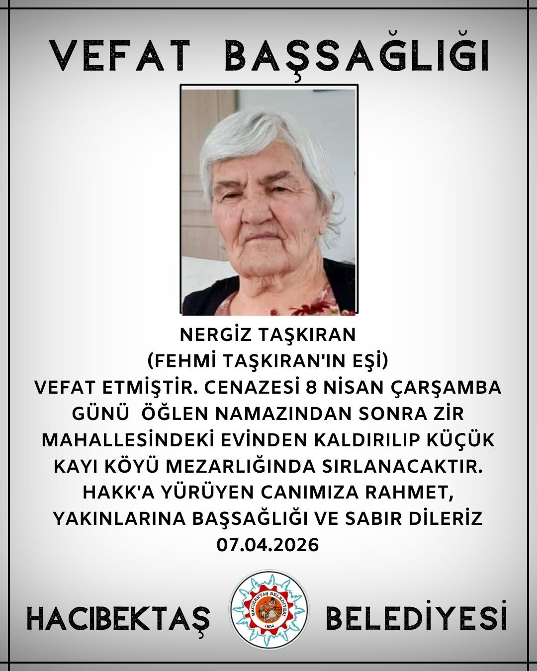 Nergiz Taşkıran Vefat ve Başsağlığı