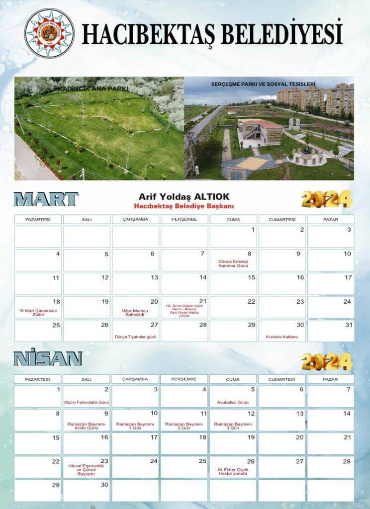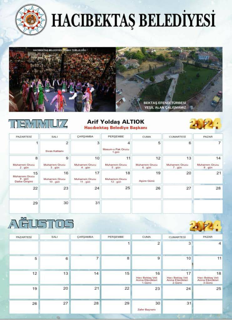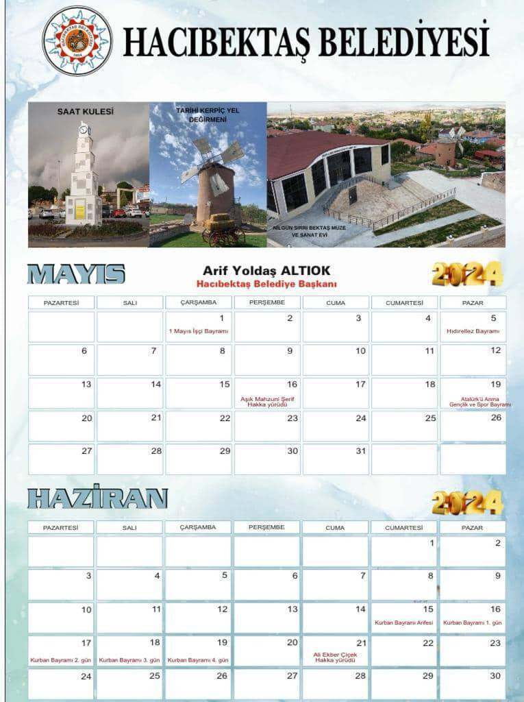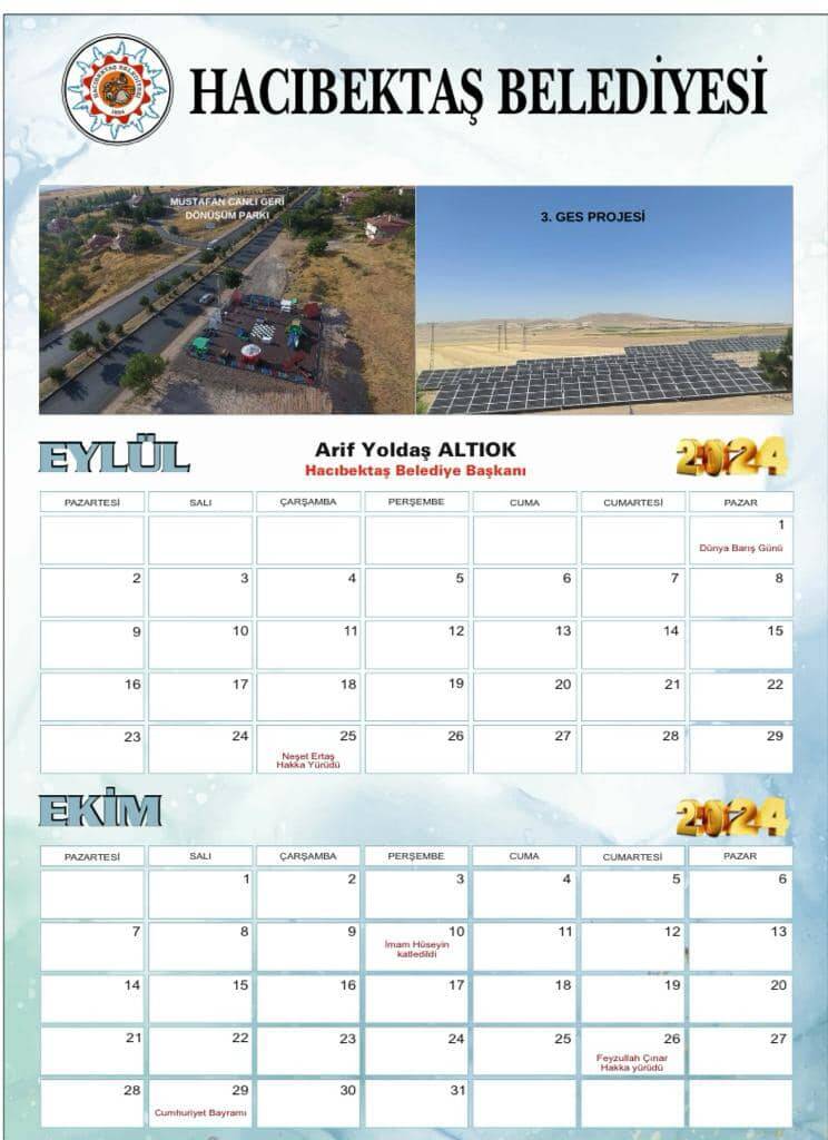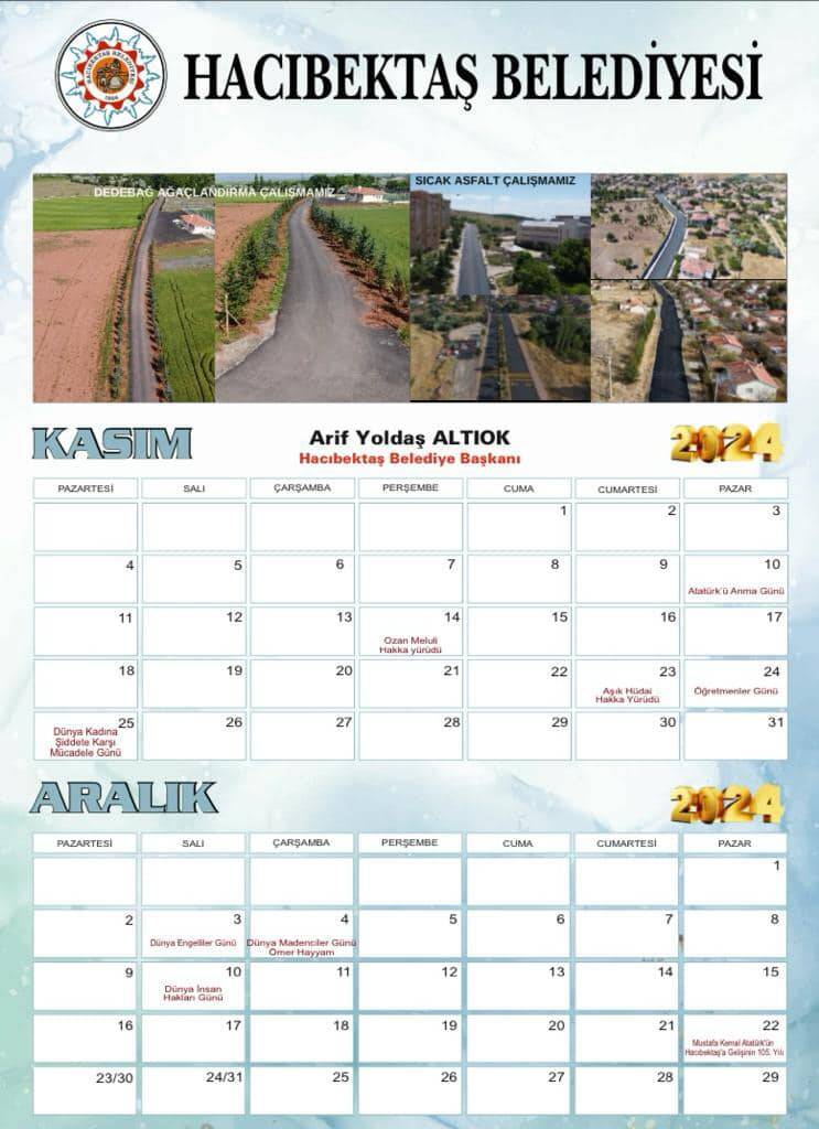 Hacıbektaş Belediyesi olarak hazırladığımız ve yarından itibaren Ücretsiz dağıtımına başlayacağımız 2024 yılı TAKVİM’lerimizi umarım beğenir, evlerinize ve işyerlerinize kabul edersiniz.