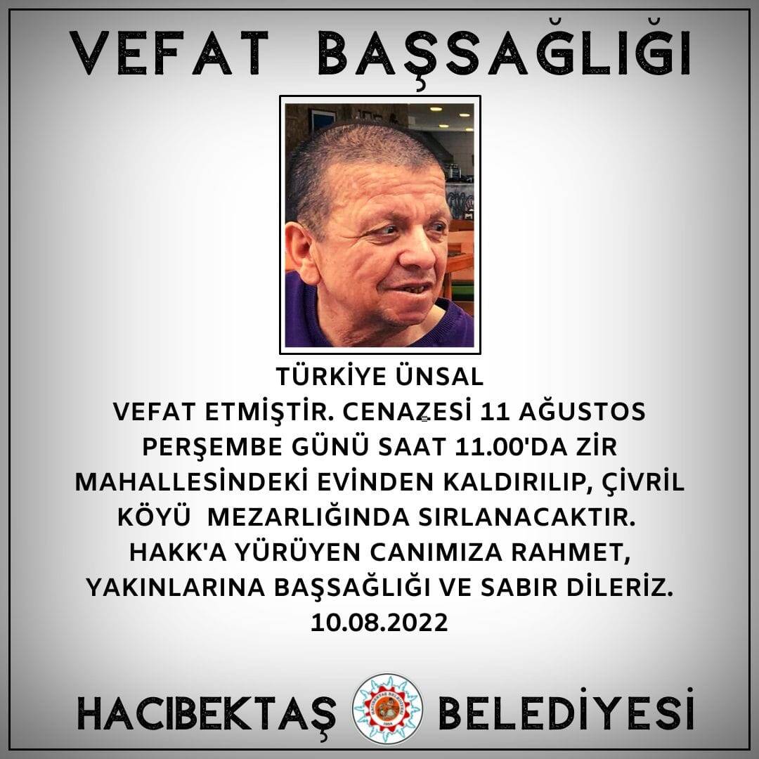 Türkiye ÜNSAL Vefat ve Başsağlığı